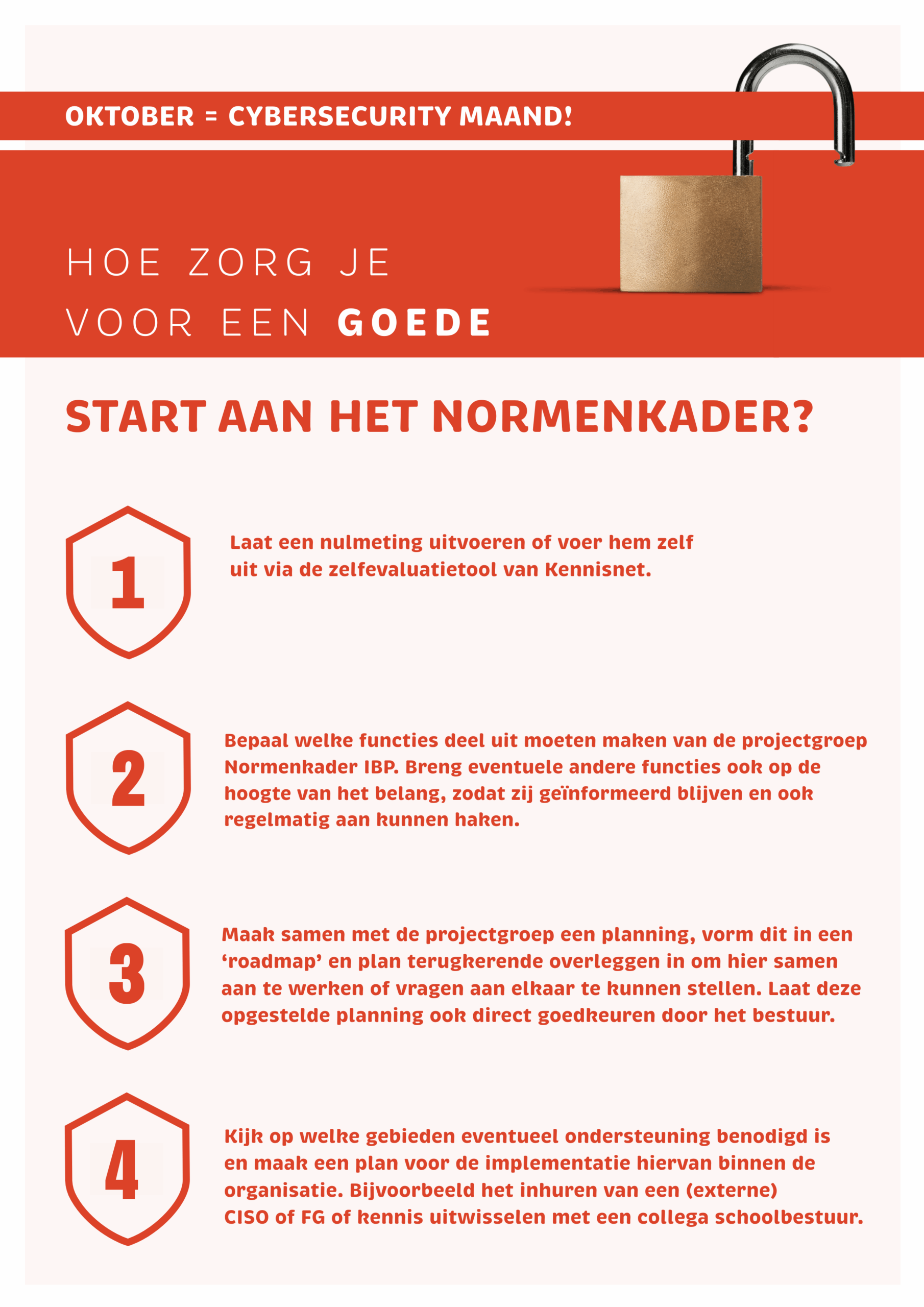 “SIVON heeft ons eerder al geadviseerd over ICT-zaken en we hebben meegedaan aan de gezamenlijke aanbesteding leermiddelen. Dat is allemaal heel goed bevallen, dus toen onze functionaris gegevensbescherming (FG) over de pilot CISO as a Service vertelde, waren we meteen geïnteresseerd. Het is gewoon fijn als een expert met ons meekijkt- en denkt”, zegt Erwin. “We waren alleen net te laat voor de eerste pilot, maar in april konden we gelukkig alsnog meedoen.” De pilot duurde drie maanden, waarin de zeven deelnemende schoolbesturen strategisch advies en operationele ondersteuning kregen van een CISO van SIVON. Annelies: “Toen de pilot begon, hadden we net een externe partij opdracht gegeven om een nulmeting uit te voeren. We wisten dus al een beetje waar we stonden als het gaat om het Normenkader IBP.”